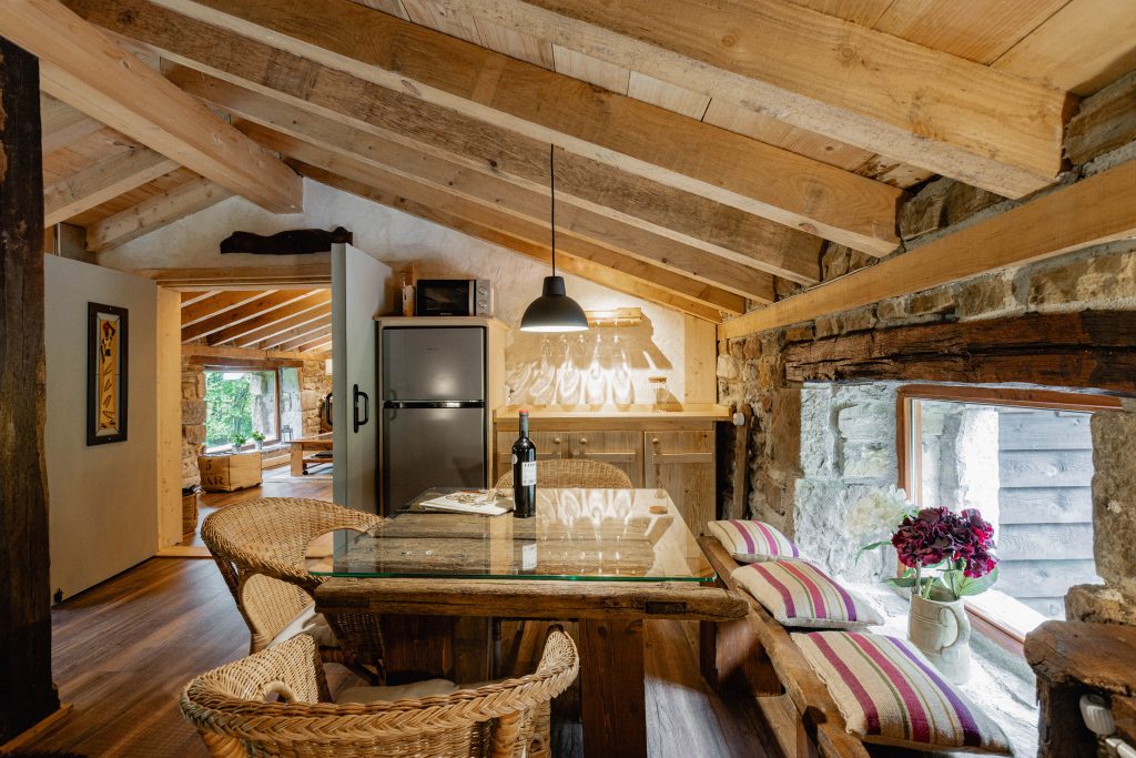La ventaja de alojarse en una cabaña grande como Las Peñas es que, aunque cada uno tenga ritmos distintos, el punto de encuentro es siempre el mismo: un salón amplio, una mesa grande y un entorno que invita a estar juntos.
