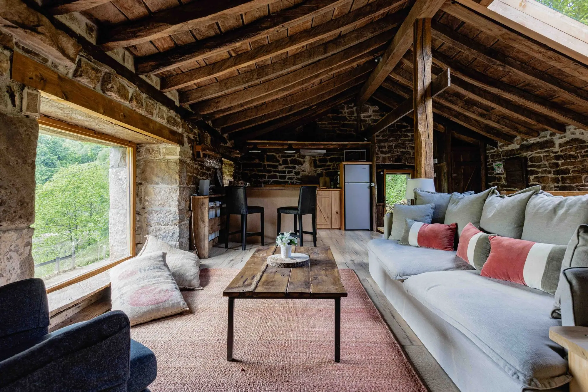 Amplio salón con chimenea, perfecto para relajarse junto al fuego, con leña incluida.
