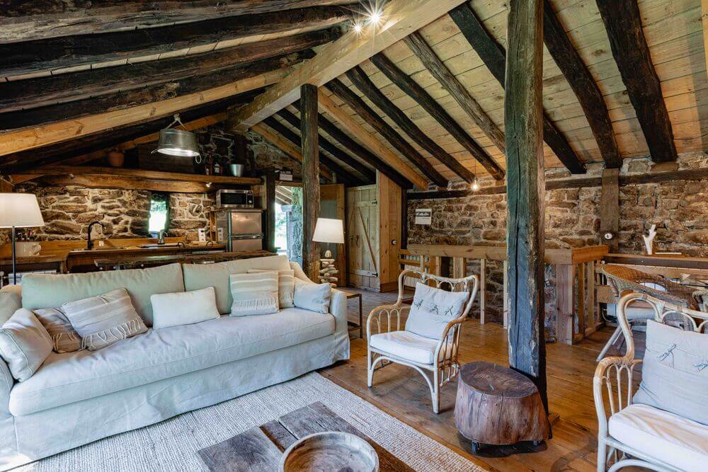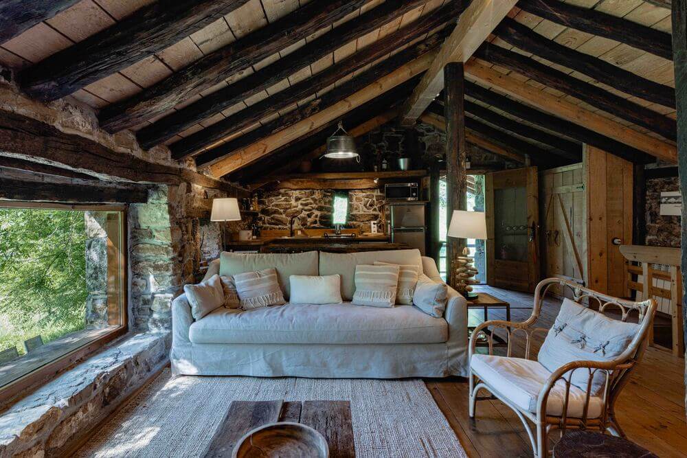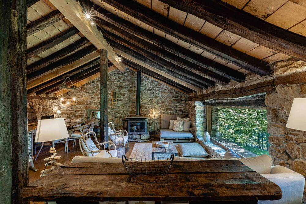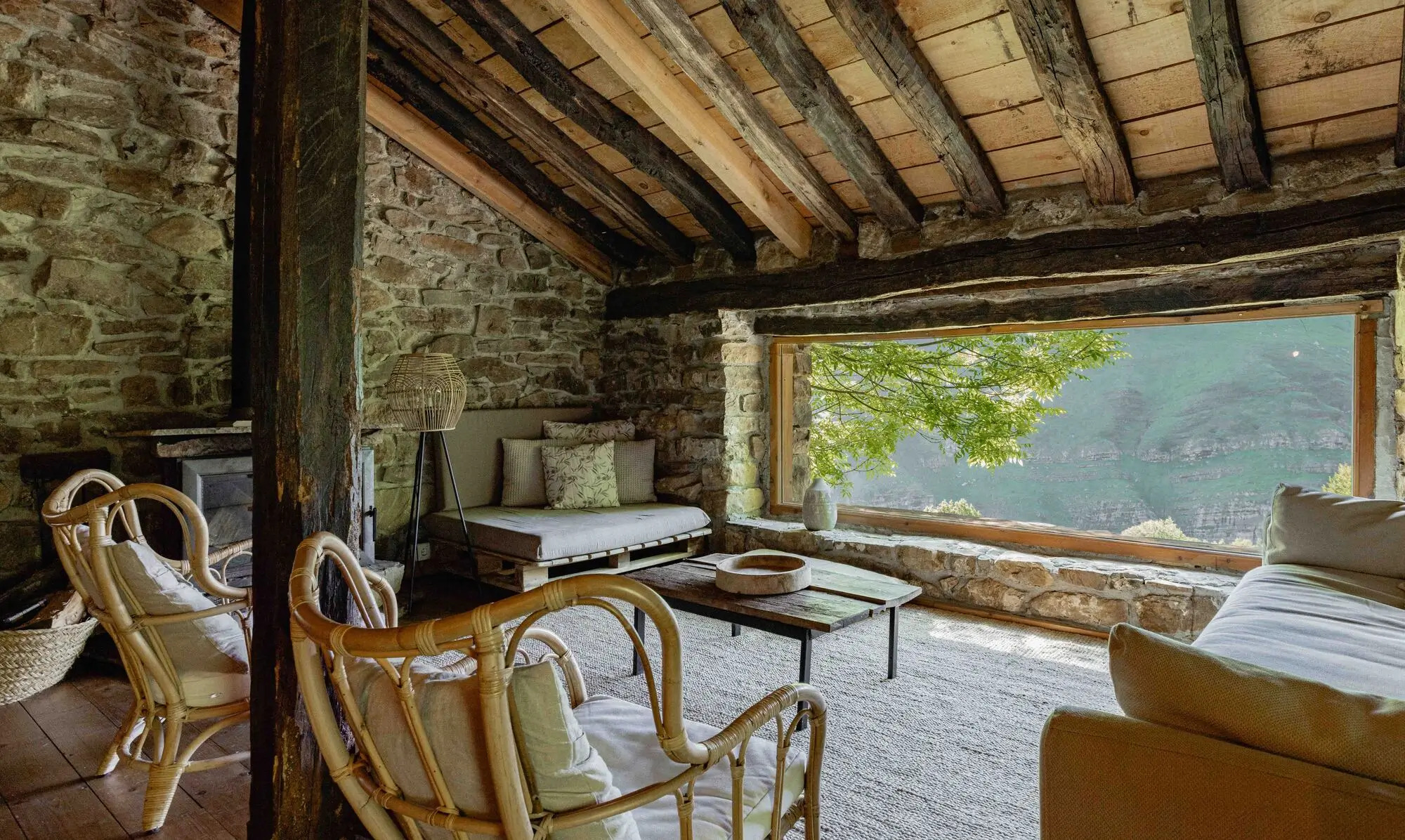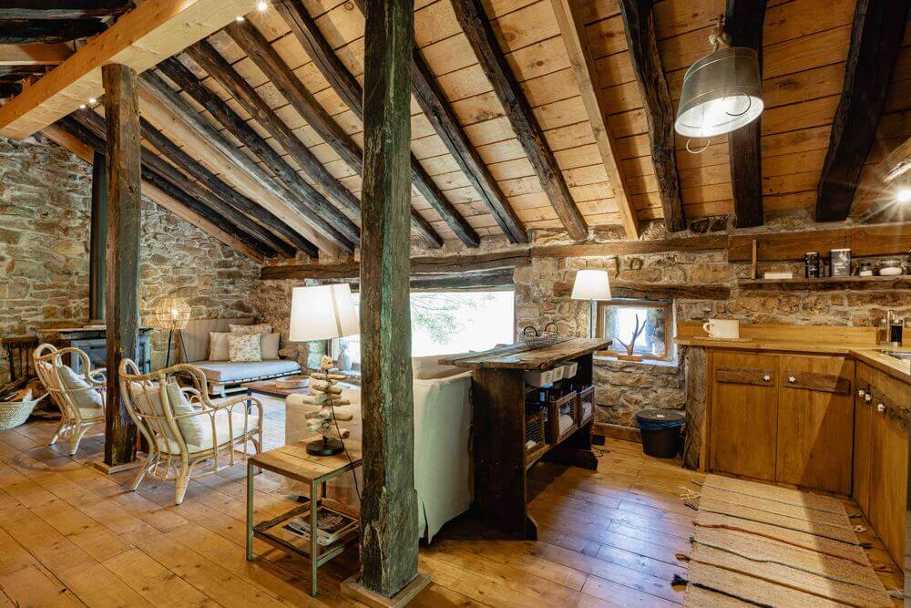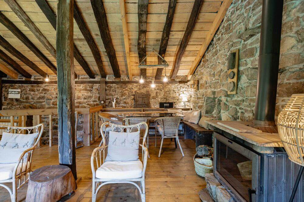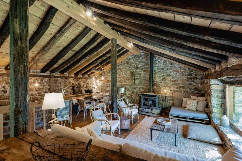 Amplio salón con chimenea, perfecto para relajarse junto al fuego, con leña incluida.